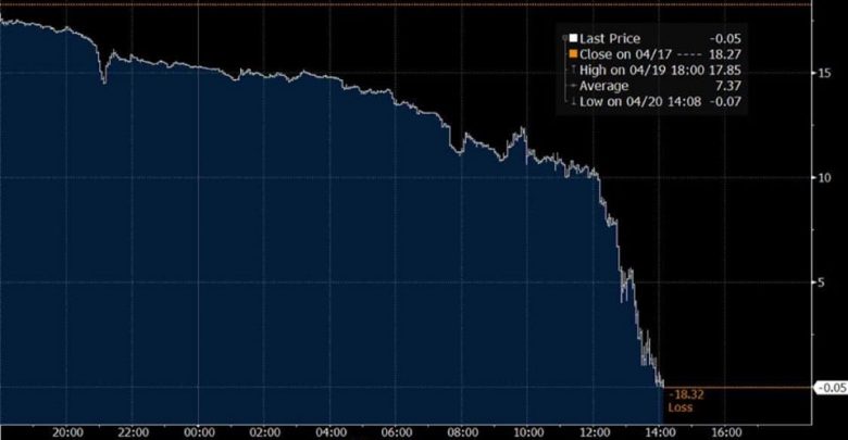 El precio de ese barril cerró -US$ 37,63 en el mercado de futuros, esto es un desplome de, nada más y nada menos que 305,97% en relación al viernes. Nunca antes visto. Jamás.