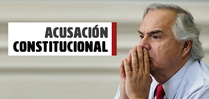 La acusación constitucional que ahora pesa sobre las espaldas de ex ministro constaba de dos capítulos. El primero apuntaba al hecho de «haber infringido la Constitución y las leyes omitiendo medidas eficaces para evitar la violación a los derechos humanos y no haber mantenido el orden público de manera racional». Mientras que el segundo señalaba que el ex ministro habría «infringido la Constitución al declarar Estado de Emergencia y haber permitido hechos no contemplados en esta figura. Se le acusa de restringir la libertad de movimiento y reunión en estados de queda, traspasando los parámetros correspondientes».